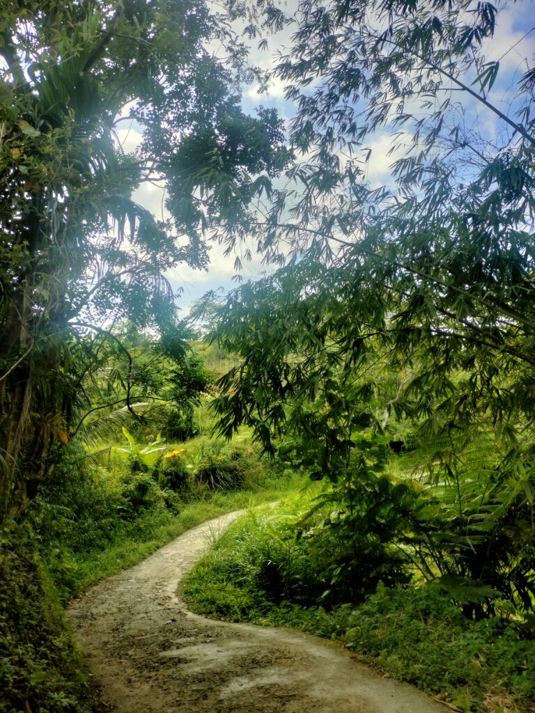 Lalu untuk melanjutkan perjalanan, aku mencari tempat pedalaman yang jarang didatangi pengunjung pada umumnya. Kurang lebih satu jam berjalan kaki dan rasa lelah terbayar kan karena sepanjang jalan melihat keindahan alam yang asri dan sejuk. Hanya ada beberapa kendaraan yang lewat tidak banyak bertemu penduduk disekitar sini